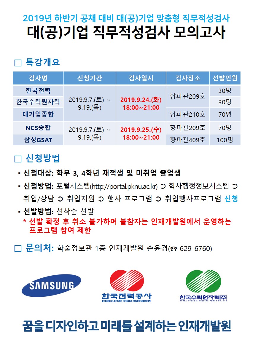 2. 2019년 하반기 채용시즌 대비를 위한 ?대(공)기업 맞춤형 직무적성검사 모의고사?를 아래와 같이 실시합니다.